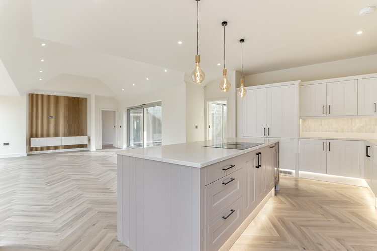 The central focal point of the stunning home is its generously proportioned living kitchen that has ample space for both dining and soft seating. The sliding patio doors to the front and rear brings the outside into the property. There is a media wall with fitted storage cupboard beneath.