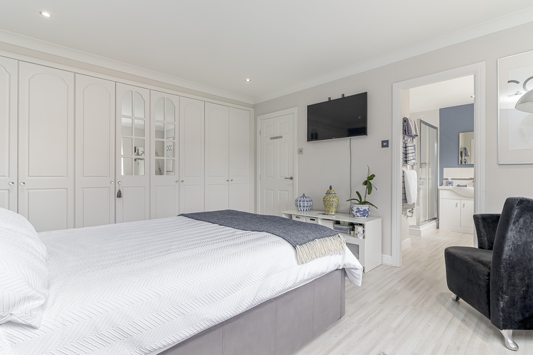 The second floor reveals an exceptional principal suite with spacious bedroom, open plan dressing area leading into the ensuite bathroom with separate bath, walk-in shower, w/c and handbasin, built in wardrobes and draws with access to eves storage.