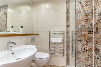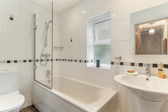 On the first floor the landing leads to the master bedroom which has an ensuite shower room with walk-in shower, w/c and hand basin, second double bedroom, a good size third and fourth bedrooms with the fourth being used as a dressing room including bespoke fitted wardrobes. There is a modern house bathroom with shower over the bath, w/c and hand basin.