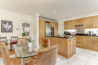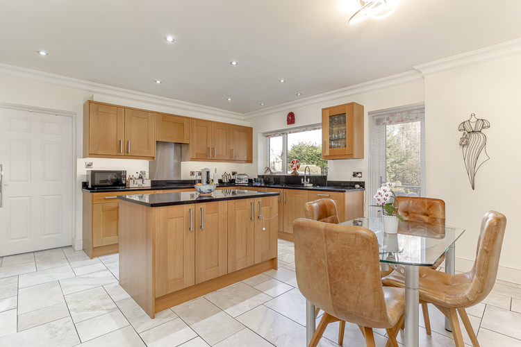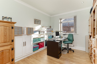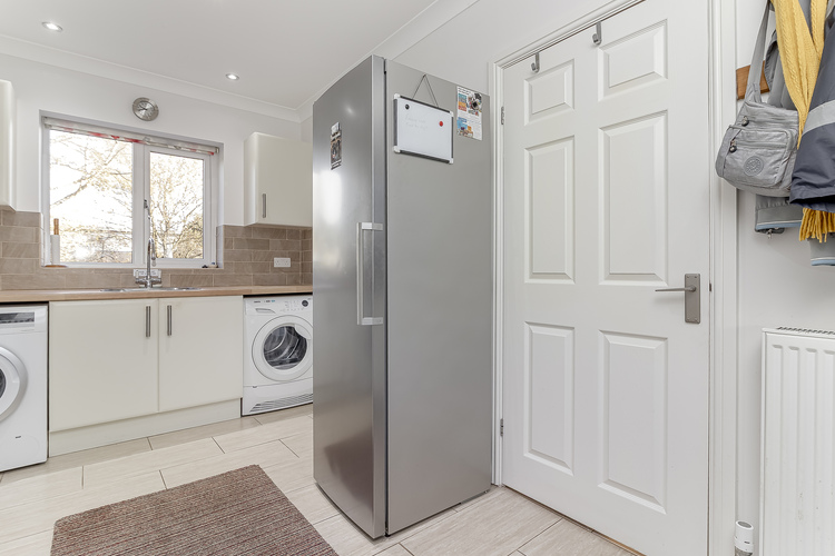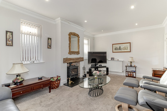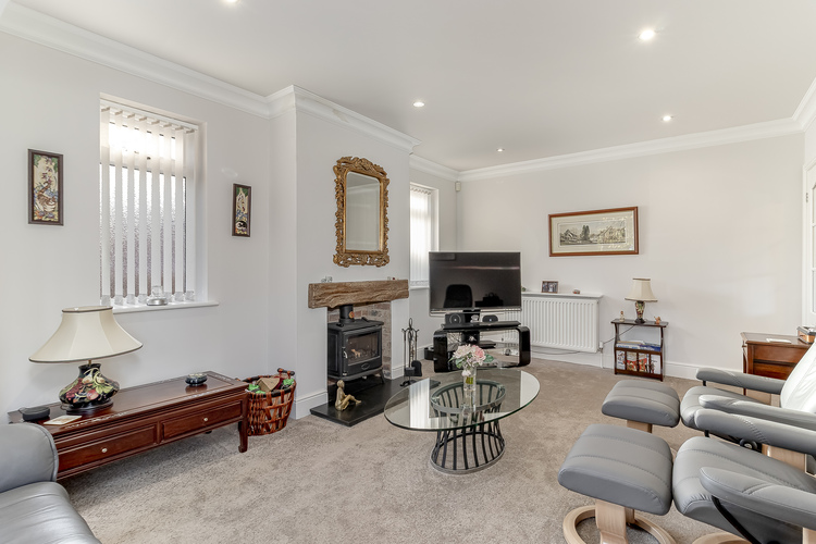 To the rear of the property is the amazing dining kitchen with quartz worktops, integrated dishwasher, freestanding fridge and freezer, Neff oven and additional microwave, induction hob, central island and space for a good sized dining table, a door leads into the spacious lounge with feature fireplace housing the wood burning stove and the room opens into the garden room which has a great view of the lovely gardens and benefits from a fully insulated roof with Velux. There is a separate utility room with built in storage cupboards and space for a washing machine and a tumble dryer and a door leading out to the front of the property.