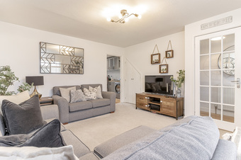 Outside the front of the property, there are well kept fore gardens and hardstanding for two cars. Additionally, there is an enclosed lawn garden that features a decked sitting area. There are colourful flower bed borders and the garden forms a beautiful space to entertain both children and family.