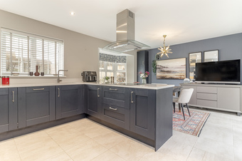 .With gas fired central heating a double glazing the living accommodation comprises; spacious entrance hall, downstairs w/c, a great sized lounge with bay window and bifolding doors leading out onto the patio. An immaculate dining kitchen with integrated appliances including fridge and freezer, dishwasher, double oven, induction hob with extractor, quartz worktops and a good sized dining area with bay window and bifolding doors leading out to the patio creating a great entertaining space. There is a separate utility with quartz worktops, sink and integrated washing machine. Additionally to the ground floor to the front of the property is the office/study which could also be used as a snug or playroom.