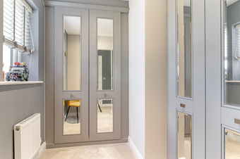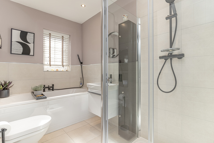 On the first floor the landing leads to the Master bedroom suite with walk in wardrobes and a large ensuite shower room with walk in shower, w/c and hand basin. There are three further double bedrooms which all have fitted wardrobes and modern house bathroom with separate bath, walk in shower, w/c and hand basin.