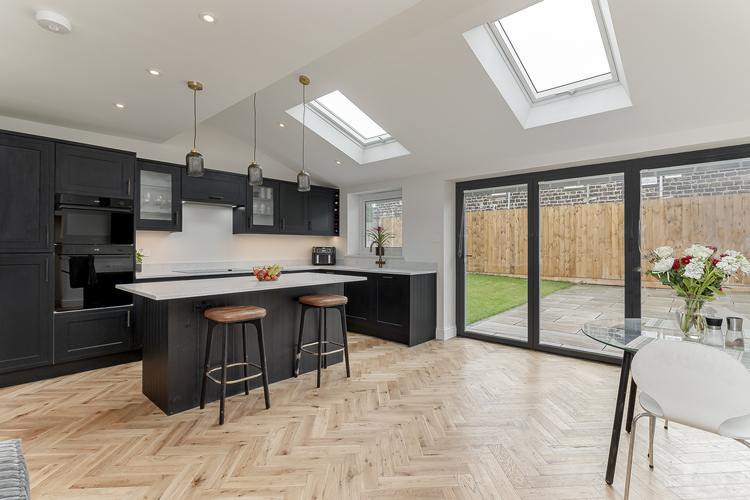 The property has been re-roofed and re-rendered, rewired and features a newly installed Combi boiler. With an engineered oak floor to the hallway there is a guest cloakroom WC and useful under stairs store with boiler there is a comfortable bay fronted lounge and a stunning extended living family kitchen. There is a dining/soft seating area with bifold doors and Velux windows providing natural light to this amazing living space. There’s a peninsula breakfast bar with integrated fridge. Additionally the newly installed kitchen offers a fridge freezer, oven and microwave, 4 ring induction hob and an instant boiling hot tap.
