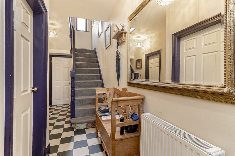 The rear of the property is laid to lawn and also offers a patio area . There is also a coal cellar currently used for garden storage.
