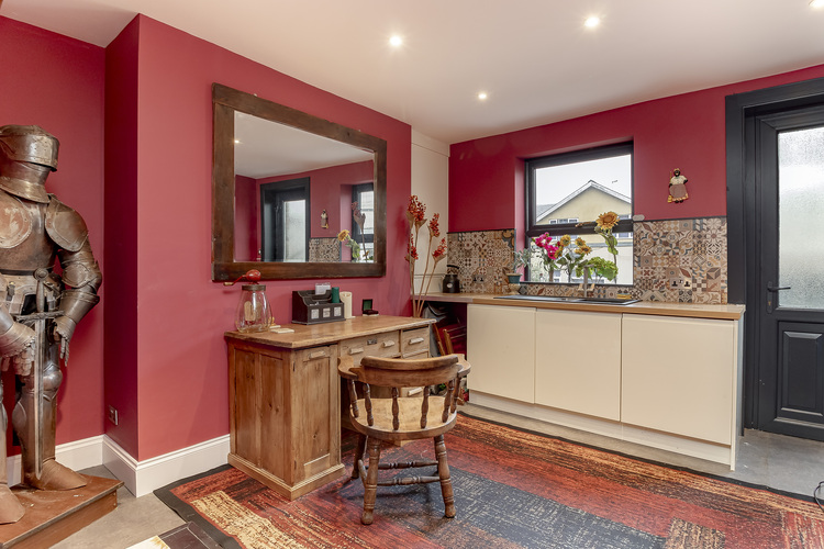 The lower ground floor consists of a utility/storage room, the spacious third bedroom , a fourth double bedroom, currently used as an office with a door leading out to the rear garden.