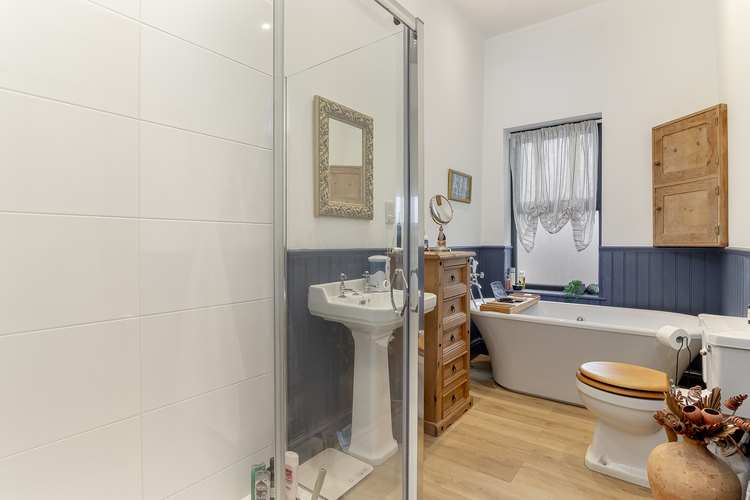 On the first floor the landing leads to the master bedroom with built in wardrobes, second double bedroom and a newly fully fitted family bathroom, including a large walk in shower, a free standing bath , hand basin and a wc.