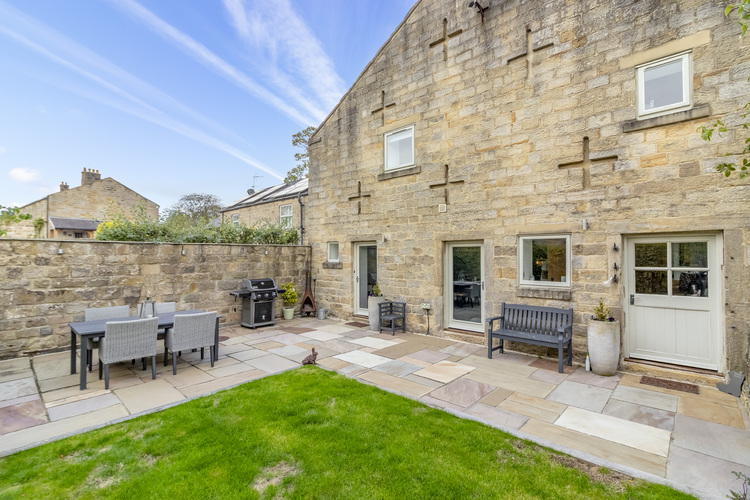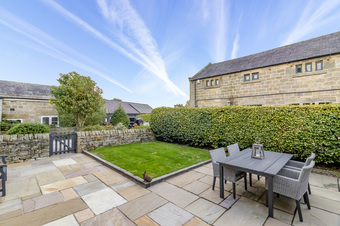 There are outside lights that provide a pretty outlook from the house. At the rear of the property there is a Yorkshire stone flagged terrace together with a low maintenance lawn garden. At the front of the property there is a further flagged terrace and shaped lawned area.