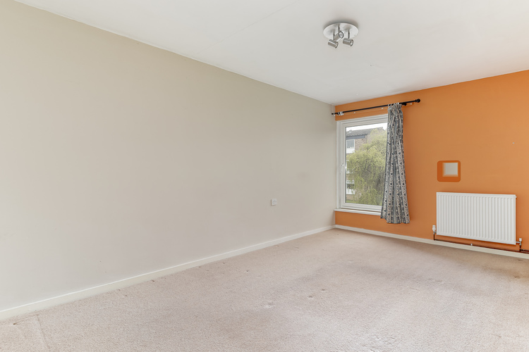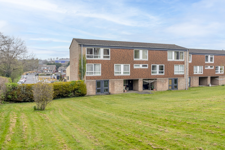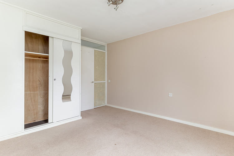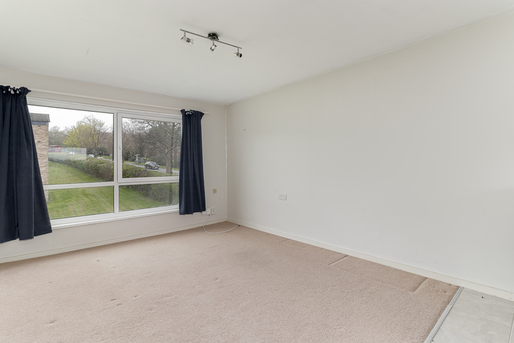 The kitchen area features a breakfast bar with four ring electric hob and fan assisted oven beneath. There is space for a fridge and freezer however the kitchen ideally needs replacing. There is a far reaching treetop view to the rear over the private driveway that serves the single garage.