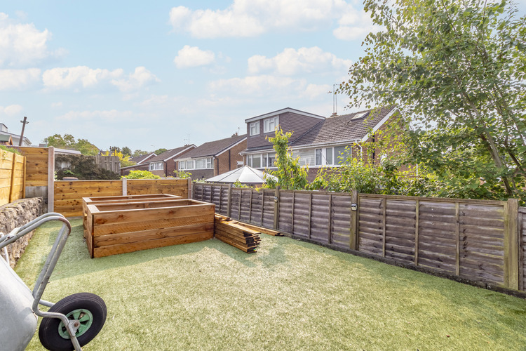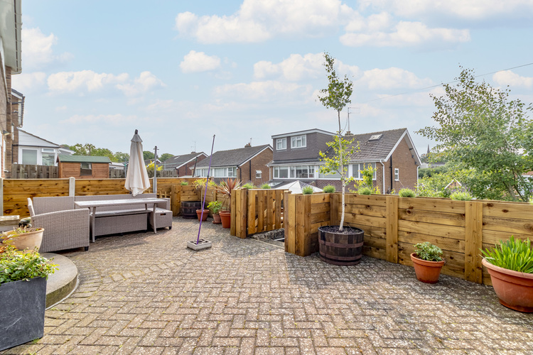 To the front of the property is a large block paved driveway offering off street parking for multiple vehicles and leads to the single garage. There is a pathway leading down the side of the property, leading to the south facing rear garden which has a block paved patio with it being surrounded with raised planters creating a pleasant seating area, perfect for entertaining. There is a low maintenance Astroturf garden area with raised beds.