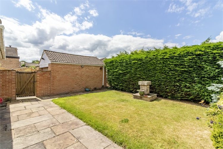 Outside to the front of the property, there is a low maintenance stone flagged patio with colourful flower bed borders.