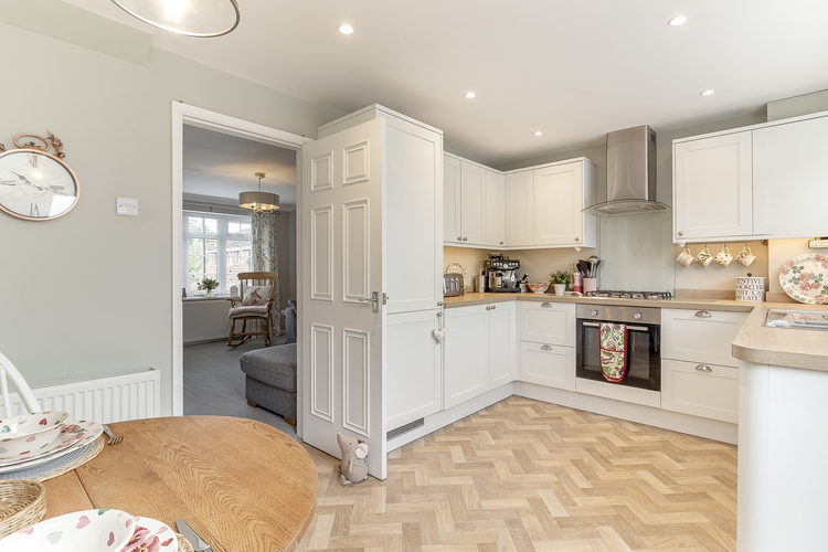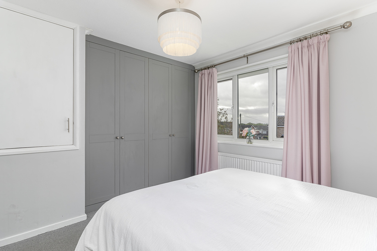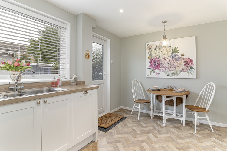 With a newly fitted gas central heating boiler (January 2024) and double glazing the living accommodation comprises, entrance hall, spacious lounge with an elevated view over the front lawn, modern fitted kitchen with integrated fridge freezer, dishwasher, washing machine, Franke sink and a dining area with a rear door leading out into the garden. There is also a useful storage cupboard under the stairs.
