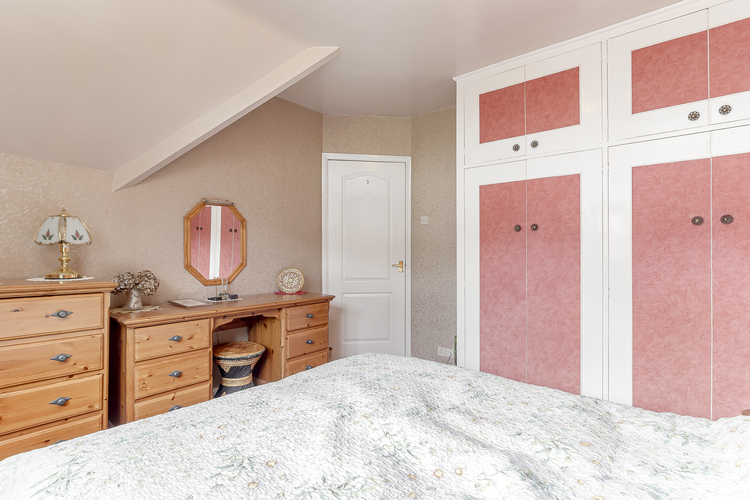 On the first floor the landing leads to the master bedroom, second double bedroom with fitted wardrobes, a good sized third bedroom and a house bathroom with shower over the bath, w/c and hand basin. There is a drop down ladder leading into the loft space which offers further storage.