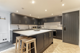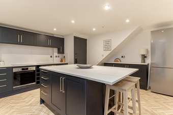 Upon entering, you are greeted by a welcoming entrance hall that provides access to all floors. The ground floor features three generously sized bedrooms, each with en-suite facilities, ensuring comfort and privacy for occupants. The lower ground floor boasts a beautifully appointed breakfast kitchen, complete with a large central island and integrated appliances. This open-plan space seamlessly connects to a dining area, creating an inviting atmosphere for gatherings. Additionally, a bathroom/utility room is conveniently located on this level, and a rear access door from the kitchen leads to two car parking spaces, adding to the property’s practicality.