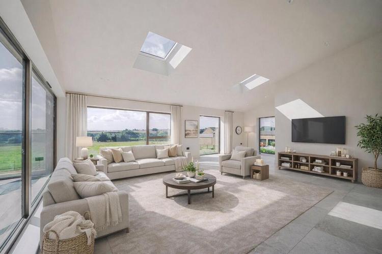 The ground floor accommodation comprises a practical home study, a useful cloakroom and a comfortable cinema room/home gym. There are three double bedrooms, all of which are serviced with opulent shower rooms fitted with Lusso Stone and tiled-in trays for a seamless and luxurious feel. There are two further sizable double bedrooms to include an L-shaped bedroom with an oversized door to the garden and 20ft bedroom both of which lend themselves for a multitude of uses such as a family room and additional living space.