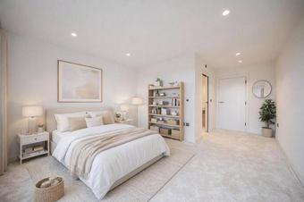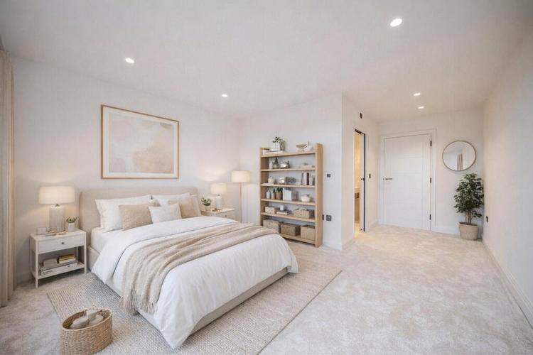 The heart of the home is the fabulous bespoke kitchen, designed by RoomRoom. It features a range of wall and base units, a large central island with wine bottle storage, beautiful complementary 80mm quartzite worktops and splashback, and a full suite of top-tier integrated appliances. A little ‘hidden gem’ of the kitchen is a cleverly concealed utility room, accessible via a secret door in which it maintains the clean interior design. A set of sliding doors open to the superb, south facing decked roof terrace and seamlessly blends the interior to the glorious exterior landscape which adds another level of depth to this generous open space. Extending to just under 28ft, the sitting/dining area is configurable to the purchaser’s own requirements and provides ample space for a good-sized dining table, perfect for hosting dinner parties or for family meals. Lastly double doors from the kitchen open to the palatial principal bedroom suite that spans the entirety of the property. To one end a fully fitted dressing room with wardrobes, dressing table and a centre island. The luxurious bathroom is also fitted with Lusso Stone and include twin sinks, a freestanding bath and separate walk-in shower with the bedroom area having a triple aspect in which to wake up and enjoy the long-reaching, stunning southerley views.