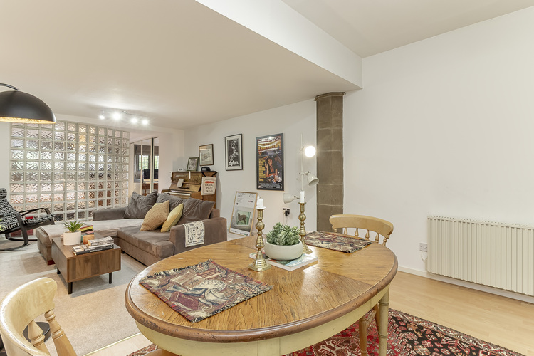 With electric heating the living accommodation comprises a secure communal entrance door with an intercom system you head into the communal hallway with the entrance to the apartment straight in front of you, private entrance hall which opens out into the main living area which is full of character features and offers a spacious and flexible living and dining area. In the kitchen is an electric hob, electric oven, plumbing for a washing machine and space for a fridge freezer. The modern shower room includes a walk-in shower, w/c and hand basin. To the rear of the property is the master bedroom which is separated from the lounge with a feature glass block wall and fitted wardrobes.
