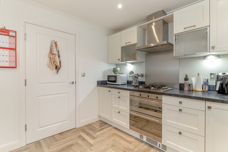 With gas fired central heating and triple glazing the living accommodation comprises; secure communal entrance with a video entrance phone system, communal hallway leading to the front door of the apartment, private entrance hall with two useful storage cupboards with one having plumbing for washing machine, spacious bay fronted lounge with triple glazing and a feature fireplace, modern fitted kitchen with integrated appliances including dishwasher, fridge freezer, double oven and gas hob.