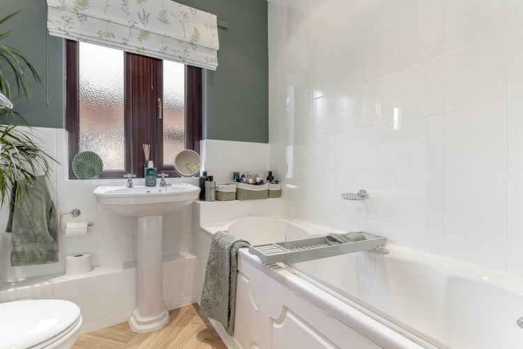 On the first floor the landing leads to the Master bedroom with fitted wardrobes and an ensuite shower room with walk in shower, w/c and hand basin. There is a second double bedroom again with built in wardrobes and a modern house bathroom with shower over the bath, w/c and hand basin.