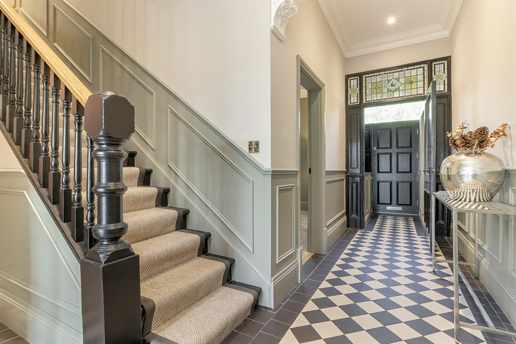 Step through the welcoming entrance porch, complete with a fitted unit for coats and shoes, into a grand hallway laid with classic Victorian tiling. This beautiful introduction sets a tone of refined grace that extends throughout the property.