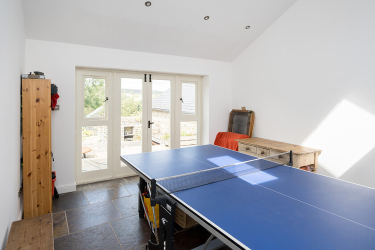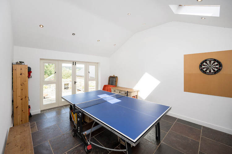 The living accommodation comprises; entrance hall, spacious lounge with feature fireplace with a multi fuel burning stove and double doors leading out onto a patio area, second reception room which is currently used as a study, open plan dining kitchen with gas range cooker, integrated dishwasher and open plan dining area with double doors leading out to the rear garden creating a great entertaining space. There is a second entrance hall which leads to the downstairs w/c, integral door leading into the garage with power and lighting, utility room/boot room and a games room/home office with vaulted ceiling and doors leading out onto the rear garden.