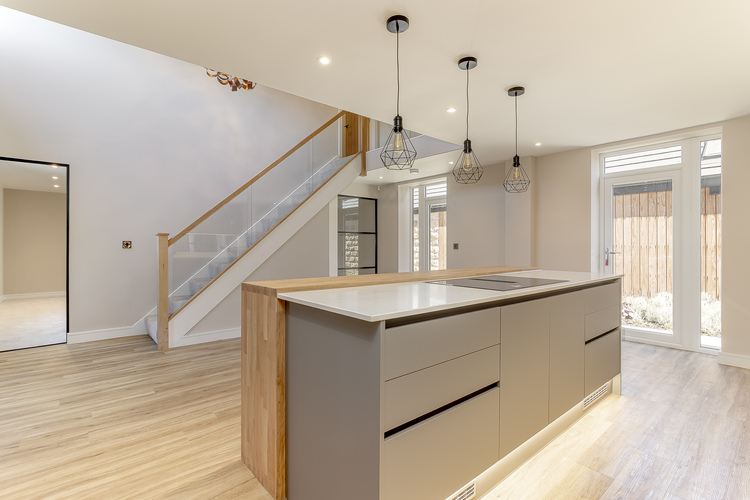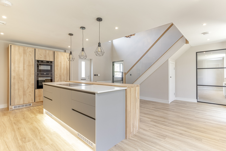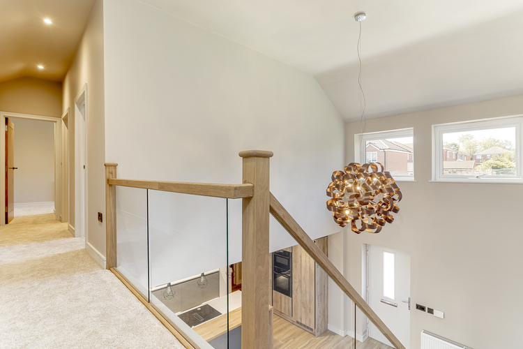 With gas fired central heating throughout the living accommodation includes an amazing entrance straight into the open plan dining living kitchen with vaulted ceiling and a solid oak and glazed staircase creates a real feature and wow factor as you walk through the front door. The kitchen includes The kitchen includes; Quartz worktops, solid oak breakfast bar, Neff n50 single multifunction oven slide & hide, Neff n50 microwave oven with hot air, AEG flex zone induction venting hob, CDA integrated tower fridge, full height, CDA integrated frost free tower freezer, full height, AEG fully integrated sliding hinge dishwasher, Large sink and boiling hot water tap. Off the kitchen there is the lounge with a feature media wall with wall hung tv cabinet, study on the opposite side of the kitchen from the lounge, separate utility room with fitted units, boiler cupboard, plumbing for a washing machine and space for a tumble dryer with worktop space next to sink and the separate downstairs w/c.