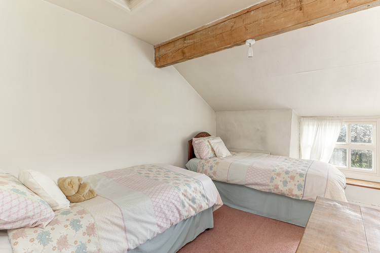 At first floor there are two bedrooms and a house bathroom. The whole of the first floor could be reconfigured into a superb master bedroom suite.