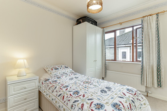 Master bedroom with fitted wardrobes, second double bedroom with a built in wardrobe and a good sized third bedroom which could also be used as a dining room or second reception room with doors leading out into the rear garden. There is a house shower room with walk in shower, w/c and hand basin and storage cupboard.