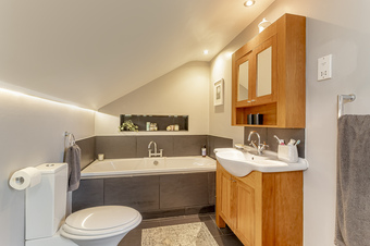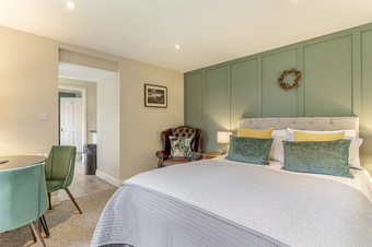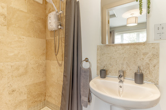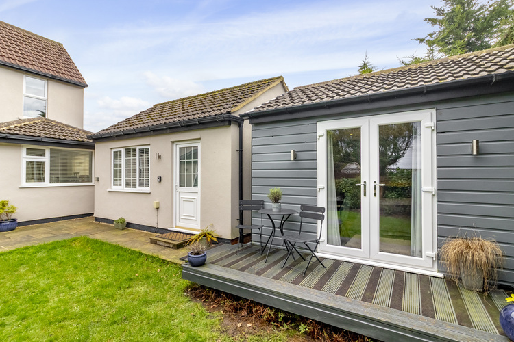 The annex provides a superb added extra income as an air bnb currently, but has a variety of uses for example, dependant relatives, office, working from home, studio or just additional living space to the family home. With electric heating the living accommodation comprises; entrance hall opening into the kitchen with electric hob, single oven and sink, master bedroom with double doors opening out onto the decking and overlooking the lawn or the rear garden. There is also a single bedroom with an ensuite shower room with walk in shower, w/c and hand basin.