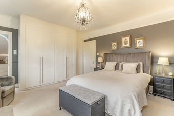 On the first floor the landing leads to the spacious Master bedroom with feature fireplace and a large ensuite bathroom with walk in shower, w/c, separate bath and hand basin with vanity unit providing useful storage. Second double bedroom with fitted wardrobes, third double bedroom, fourth single room with built in storage and house bathroom with shower over the bath, w/c and hand basin.