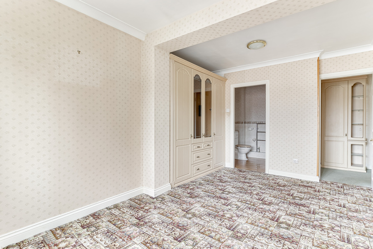 First floor comprises: Generous living room with large windows overlooking front aspect. Master bedroom with built in wardrobes and with window to rear aspect leading to ensuite with bath, shower attachment, built in vanity unit, w/c and illuminated cabinet.