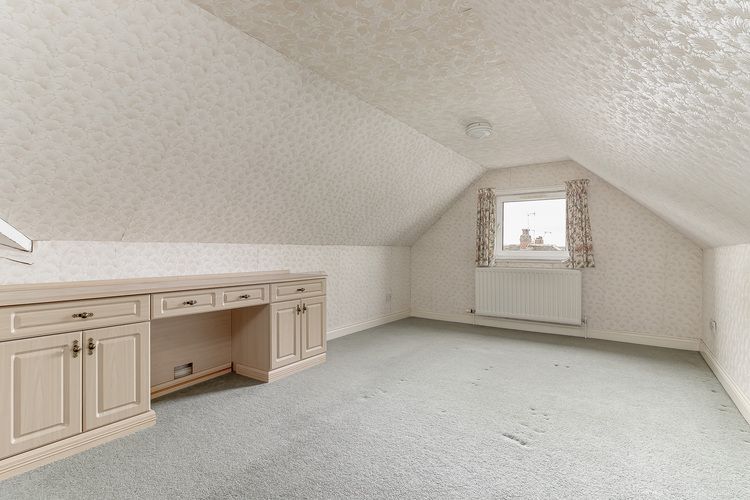 Second floor comprises: Landing area with Velux window. Cupboard and eaves storage. Second bedroom with built in drawer unit. Bathroom with Velux window with shower enclosure, basin and w/c and further storage cupboards.