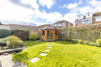 Outside to the front of the property is a low maintenance garden, a driveway offering off street parking and that leads to the single garage which has power and lighting. There is a side path leading round to the rear garden where there is a good sized lawn, well stocked flower beds, multiple seating areas, patio and a large summerhouse.
