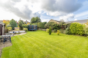 Outside at the rear of the property there are well kept shaped lawn gardens with flowerbed borders. The garden is both enclosed and private plus features a raised terrace which offers far reaching views towards open countryside.