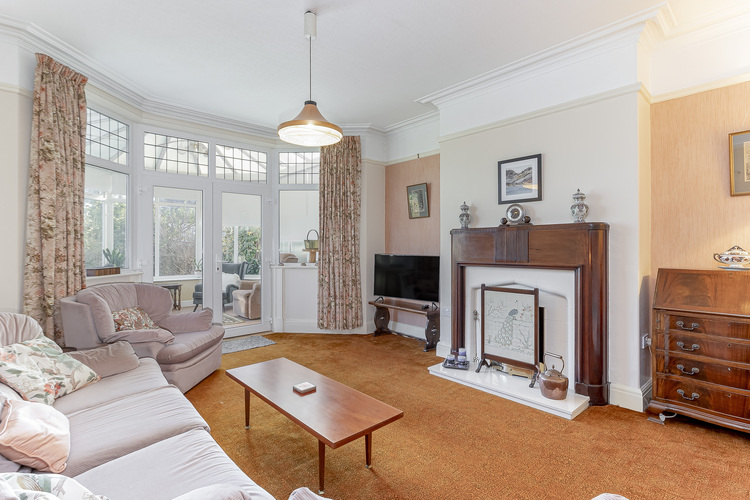There is a spacious sitting room that connects to a conservatory overlooking the rear south facing garden.