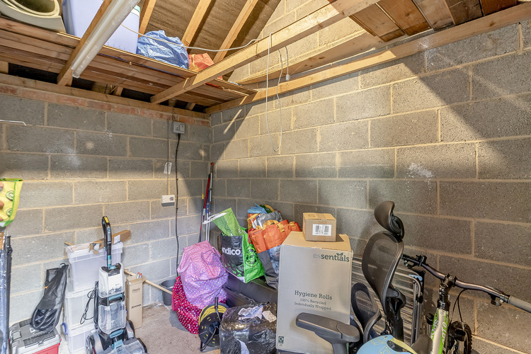 Outside to the rear of the property there is an enclosed flagged courtyard garden with a gate that provides access to a useful store 10ft x 8ft with electric light. There is a parking space to the end of the terrace and an additional parking space under a carport. Shaped front lawn.