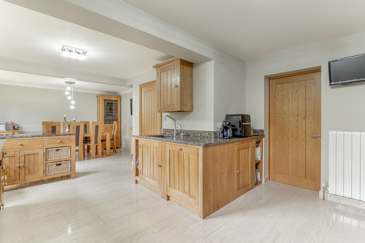 The kitchen has solid wood units and granite worktops, integrated appliances including fridge, freezer, dishwasher, Kensington gas range cooker and there is a separate utility room with sink, plumbing and space for the washing machine and tumble dryer.