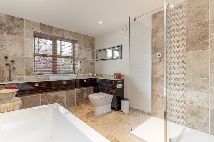 On the first floor there is a split landing which to the right leads to the master bedroom suite with a walk in dressing room and ensuite shower room including a walk-in shower w/c and hand basin, and 2 further double bedrooms. On the left hand side of the split landing is the second bedroom with ensuite shower room which is ideal for guests, and a the large house bathroom with separate bath, walk-in shower, handbasin and w/c.