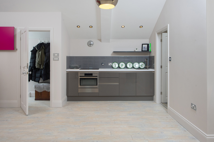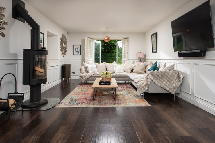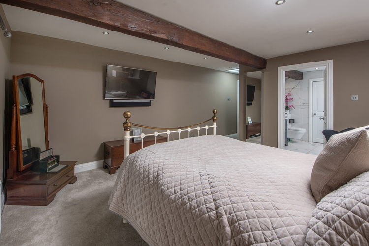 The house opens primarily via an entrance porch into an outstanding 45-foot-long dining/living kitchen with heated flooring. The living space is centred around a feature Scandinavian dual-fuel stove and has French doors opening out to the garden. The high quality vaulted kitchen comes complete with a range of units, a central island with a breakfast bar, high quality fitted appliances including a fan oven, steam oven, microwave, quooker tap and an AGA, and quartz worktops. Leading through there is a striking double height formal dining room which is the perfect entertaining space featuring original exposed beams, bi-folding doors to the garden, and a log-burning stove. Adjoining there is a cool snug again with doors to outside. An inner hall with a useful downstairs w/c branches off on to one of the bedrooms, and stairs lead down to a shower room and home gym. Stairs lead up to the large open plan annexe/studio apartment including a bedroom, kitchen and living area which also benefits from a bathroom with a separate shower enclosure.