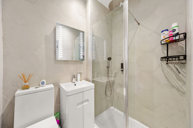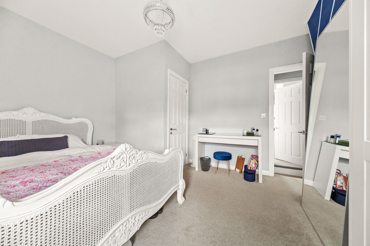 On the first floor the landing leads to the master bedroom which currently has a king size double bed in it with built in wardrobes and an ensuite shower room with modern white suite, walk in shower, w/c and hand basin. There is a good sized second double bedroom.