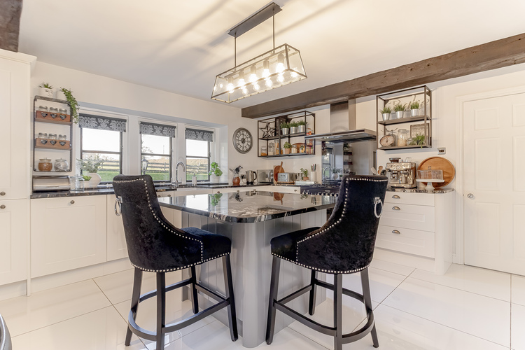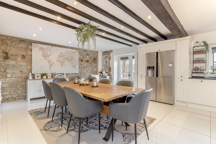 The heart of this beautiful home is it spacious living kitchen that has both a breakfast bar and ample space for dining table and chairs. The kitchen units offer base cupboards with an integrated dishwasher, washing machine and a Belfast sink with a long distance Nidderdale view. There is a freestanding Range Master cooking range with an extractor hood over.