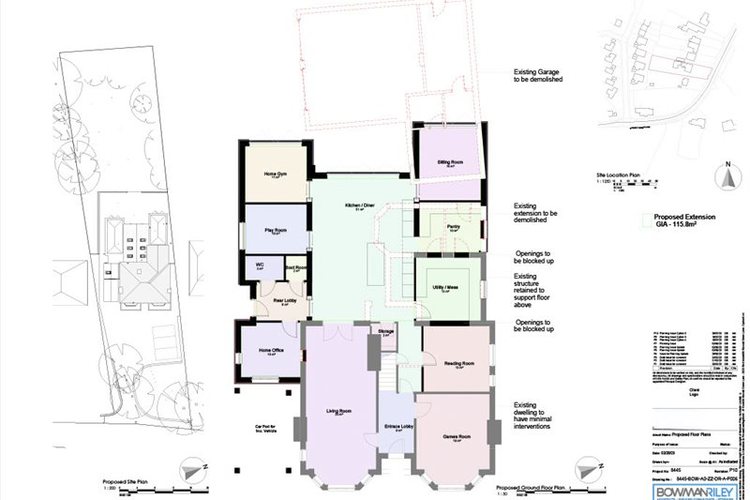 The ground floor of the property would be both widened and extended to create an entrance lobby, guest cloakroom and boot room. There would be a side entrance lobby with home office, gym and a playroom.