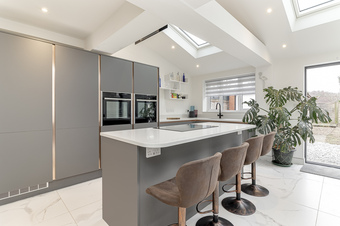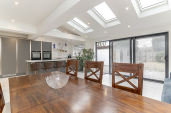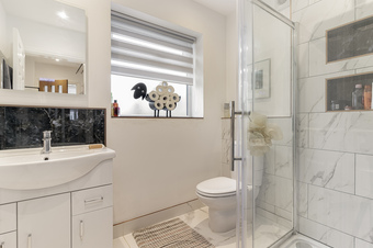 Recently replumbed, UPVC windows installed and rewired, the beautifully presented living accommodation comprises; entrance hall leading into the lounge with feature fireplace with living flame gas fire, a stunning open plan living kitchen with underfloor heating, modern fitted kitchen, dining and living area with sliding door leading out into the garden creating a great entertaining space. The kitchen includes quartz worktops, central island with a induction hob with extractor fan and a breakfast bar with seating for four, full length integrated fridge and freezer, dishwasher and two eye level Neff ovens. Also with underfloor heating is the utility room/boot room with a side access door outside, and a downstairs shower room with walk in shower, w/c and hand basin.