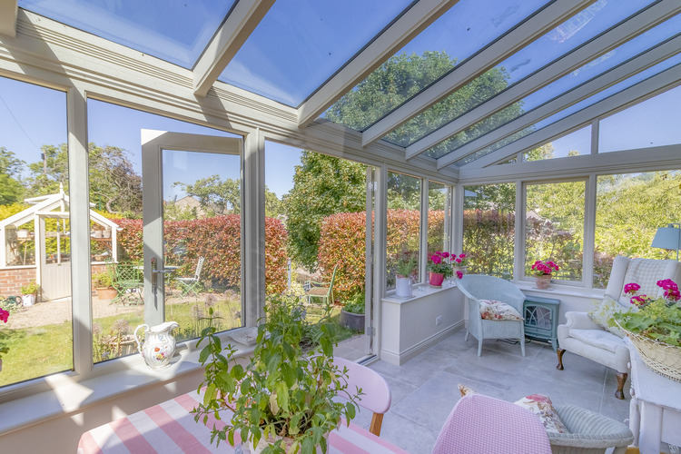 A main feature of the stunning house is its gardens which are arranged on two levels and offer an array of colourful plants shrubs borders and a delightful garden room and greenhouse.