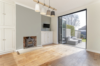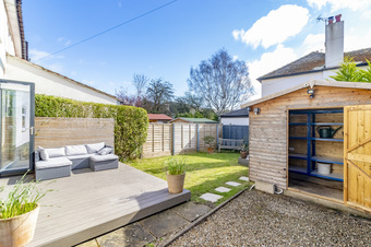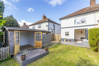 Outside to the front of the property is a good sized lawn offering off street parking for multiple vehicles. There is a side access gate which leads to a useful bike store along with a wood store. To the rear of the property is a south facing garden with a good sized lawn, a raised decked area which is access from the dining kitchen and creates a great entertaining area. There is also a large wooden store with power and a separate entrance to an office are which could be used as studio also if people working from home as it is insulated and has power and lighting.