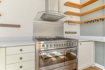 With gas fired central heating and double glazing the living accommodation comprises; entrance hall with useful understairs storage and a utility cupboard, spacious lounge with wood burning stove and a bay window with fitted shutters, open plan dining kitchen with multi fuel stove and bifolding doors leading out onto the south facing decking. The kitchen includes a Belfast sink, integrated dishwasher and has composite granite worktops.