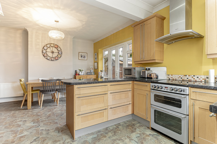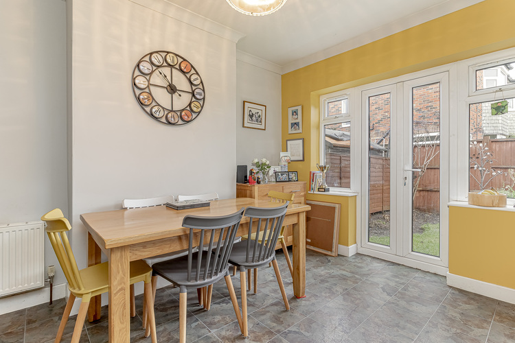 At the rear of the property, there is a full width dining kitchen with dining area offering patio doors out to the rear lawn garden.