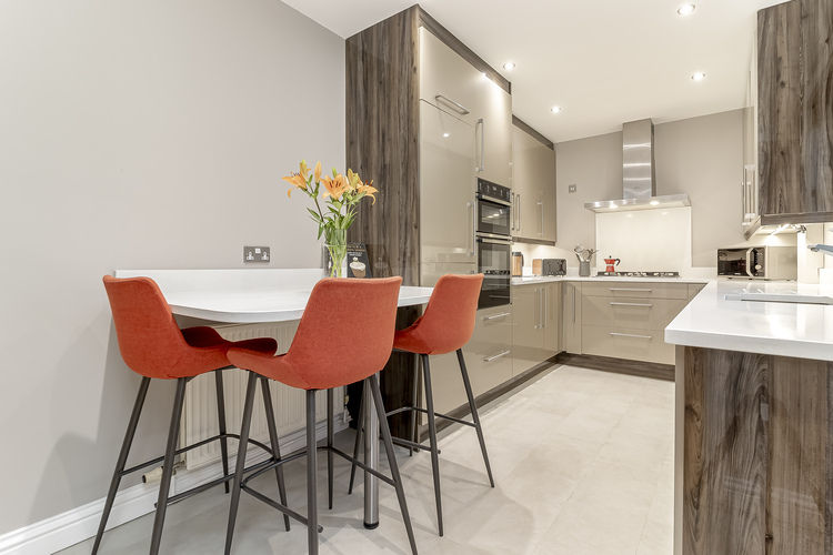 With gas fired central heating, double glazing and character features throughout the living accommodation comprises; Entrance hall with solid Oak flooring, spacious lounge with bay window and feature fireplace, dining room with solid Oak flooring and a door leading through to the modern fitted breakfast kitchen with quartz worktops, breakfast bar, Neff double oven, gas hob with extractor, integrated fridge and freezer, dishwasher, washing machine and a door leading out onto a flagged patio. There is also a really useful understairs storage cupboard.