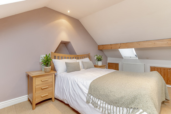 On the second floor is the good sized second double bedroom which has an ensuite shower room with walk in shower, w/c and hand basin and the room also has useful storage in the eaves.