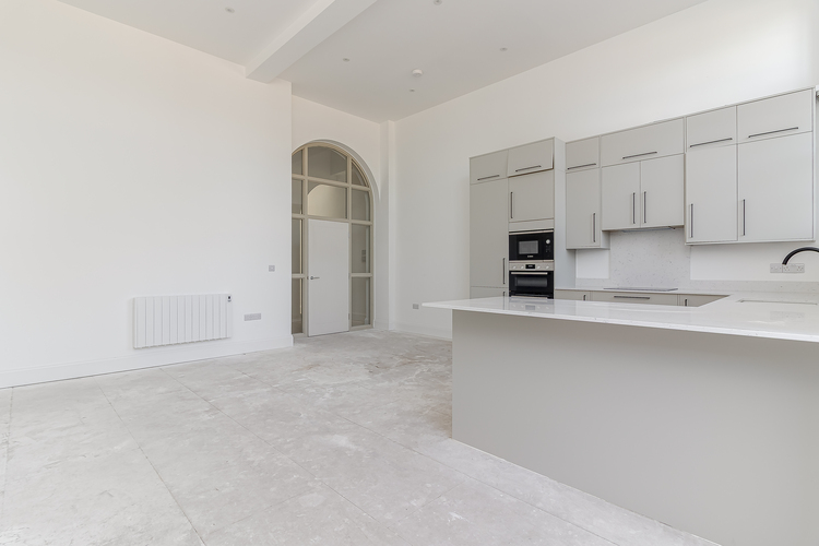 With electric heating the living accommodation comprises; communal entrance hall which is shared by two property and a door leading to the private, entrance hall, amazing feature internal windows and doors creating a lovely feature and leading into the open plan living kitchen with a lounge and dining area. The kitchen includes quartz worktops, Bosch appliances including fridge, freezer, dishwasher, washing machine, induction hob, double oven, microwave and there is a breakfast bar.